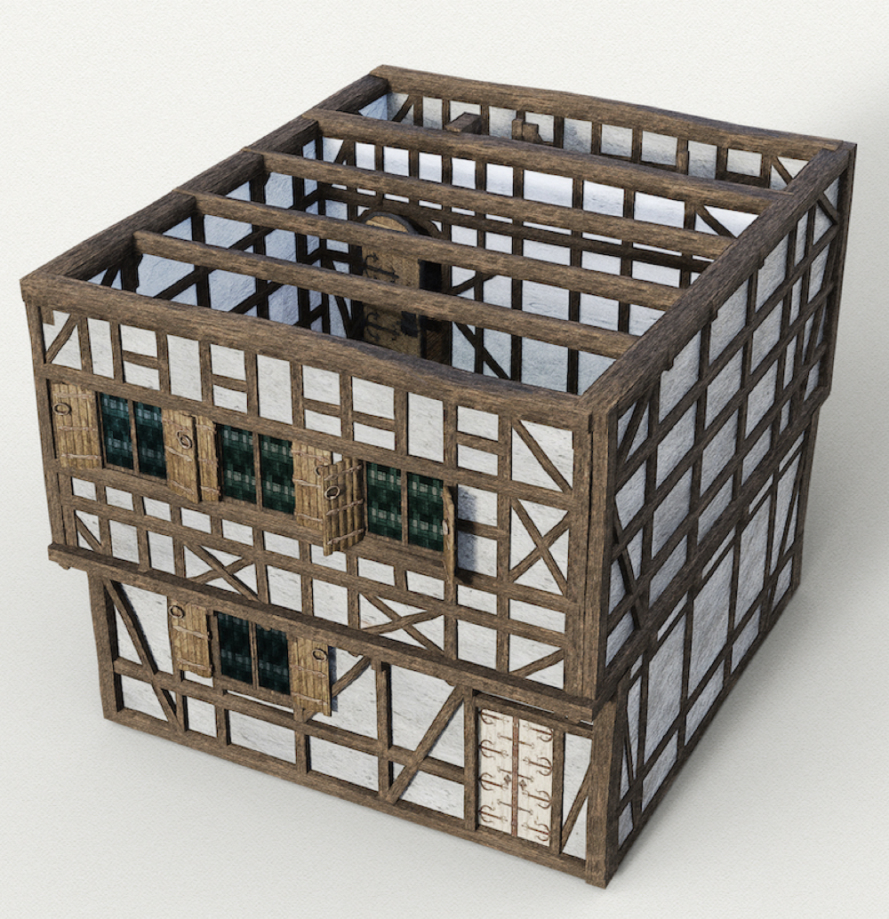 Urbane Fachwerkhäuser im 17. Jahrhundert wiesen in der Regel zwei, drei oder mehr Stockwerke auf, um auf enger Grundfläche mehr Raum unterzubringen.